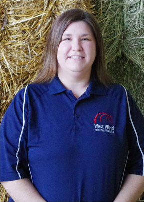 Jen joined us as a technician student in February 2014. After graduating from NAIT's Animal Health Technology program with honours in the spring of 2015, she completed her practicum at West Wind Veterinary Hospital and has stayed as a full time technician. She has embraced all aspects of being a technician and greatly enjoys working on all animals; particularly horses, dogs, and cats. Jen enjoys spending time with her husband, John, and children, Allison and Dale. She makes a point to share her love and knowledge of animals with her children, nieces, and nephews. As a pet owner herself of a dog, two horses, and five cats she knows the importance animals can be in everyday life. Jen feels fortunate to have a career that encompasses her passion for animals and medicine daily.